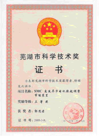恭祝我公司“SMC交流异步电机软起调整节能装置”获得科技进步三等奖